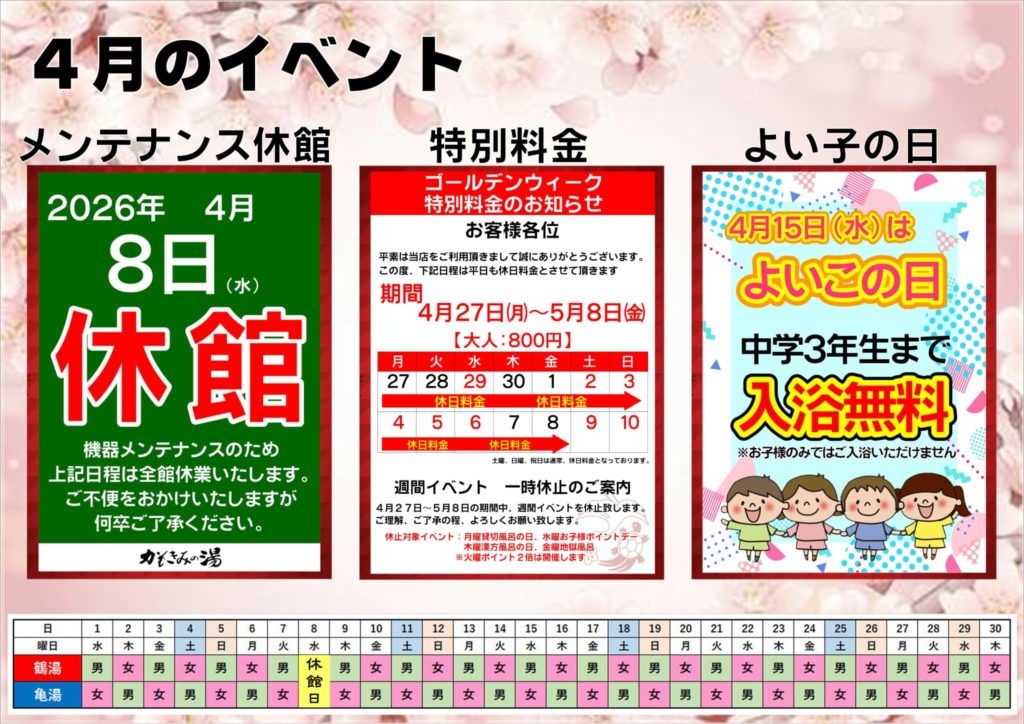 メンテナンス休館日のお知らせ
